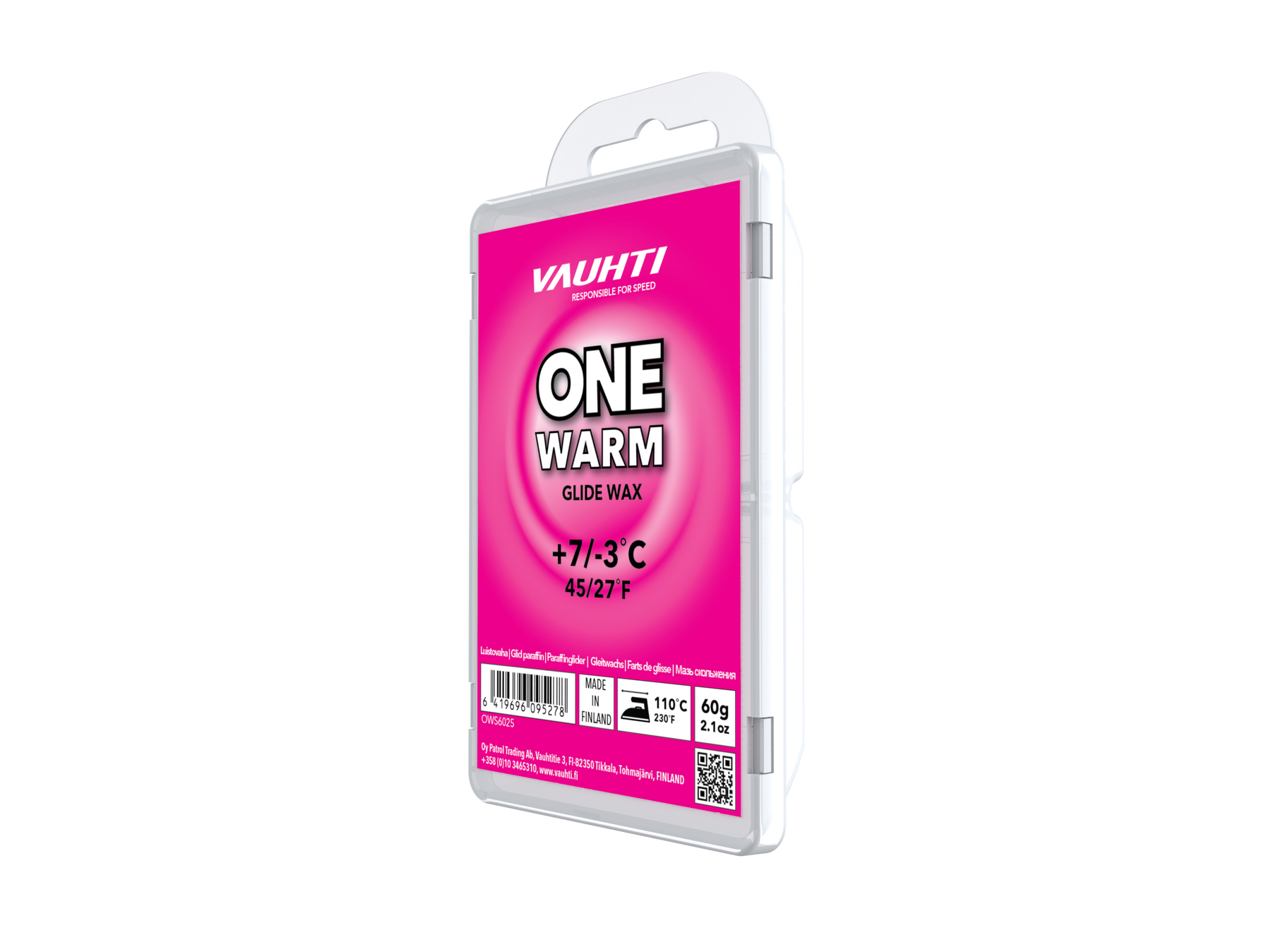 VAUHTI ONE glide waxes are based on high-quality hydrocarbon ingredients. Waxes are intended for recreational and active skiers inall snow typesas well as for base preparation and maintenance for racing.